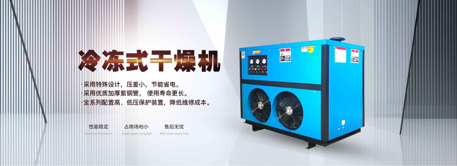 冷凍式干燥機運用了物理原理,將壓縮空氣中的水分冷凍至露點以下,使之從空氣中析出的空氣干燥機。受限于水的冰點溫度,理論上來說它的露點溫度可接近于0度,